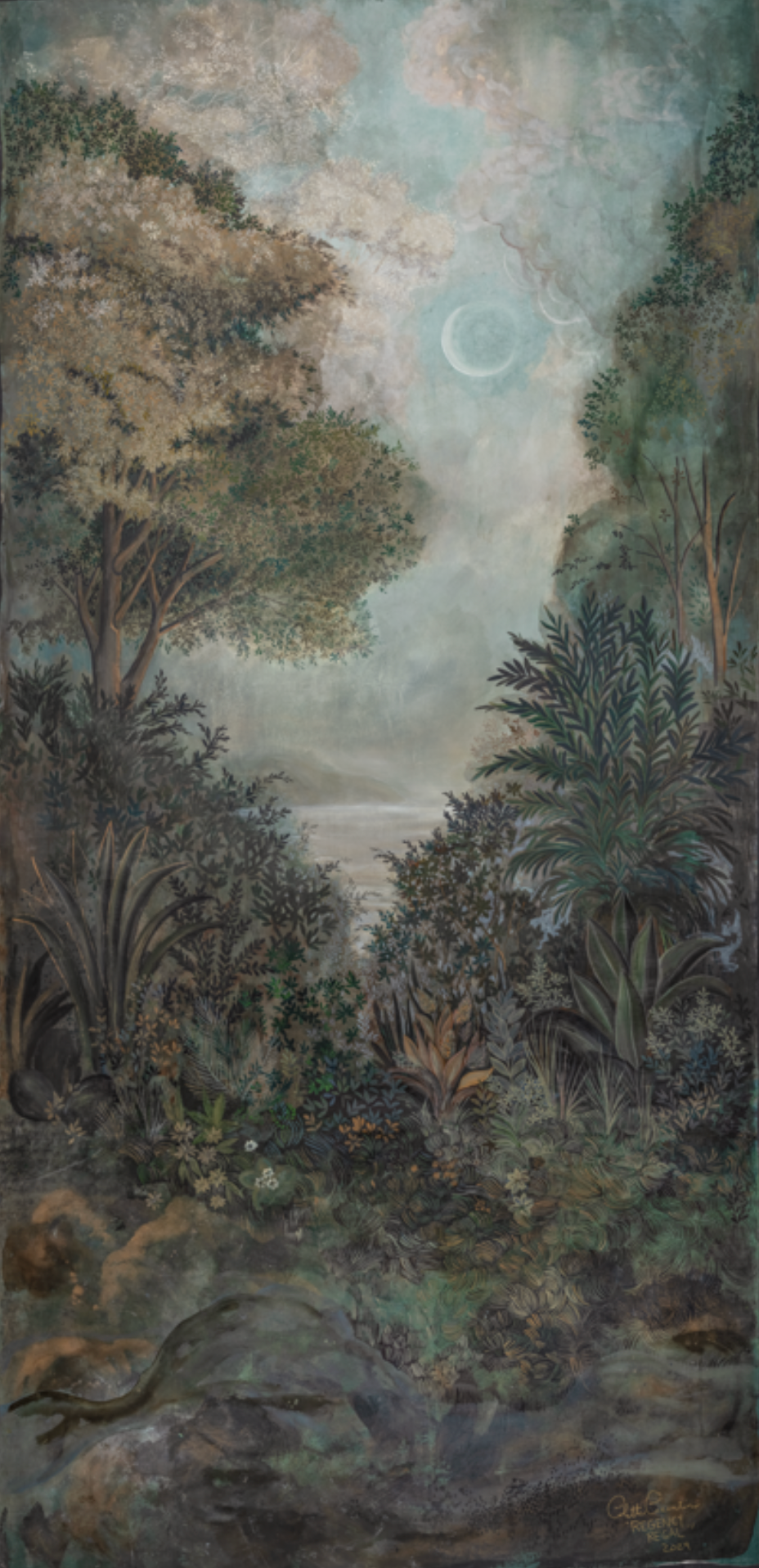 implying the sea, other foliage and foreground foliage. Moody, dark