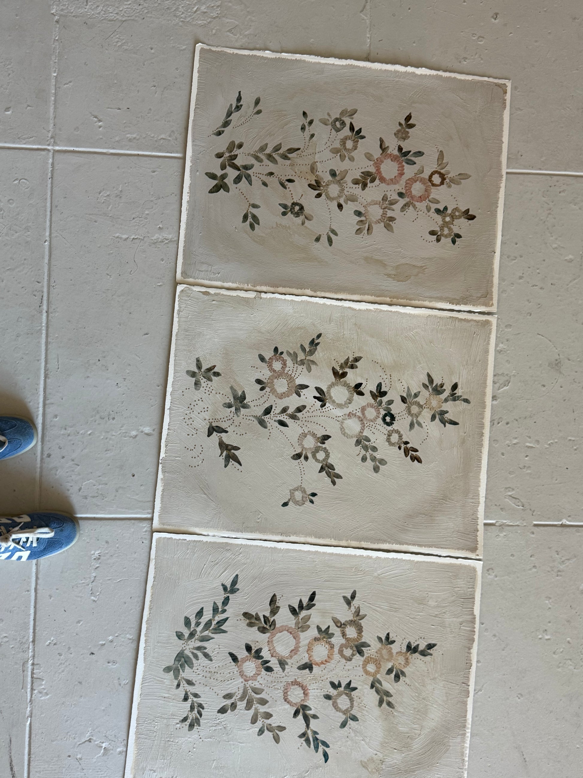 3 botanical works on 33" x 22" Arches 300 lb watercolor paper