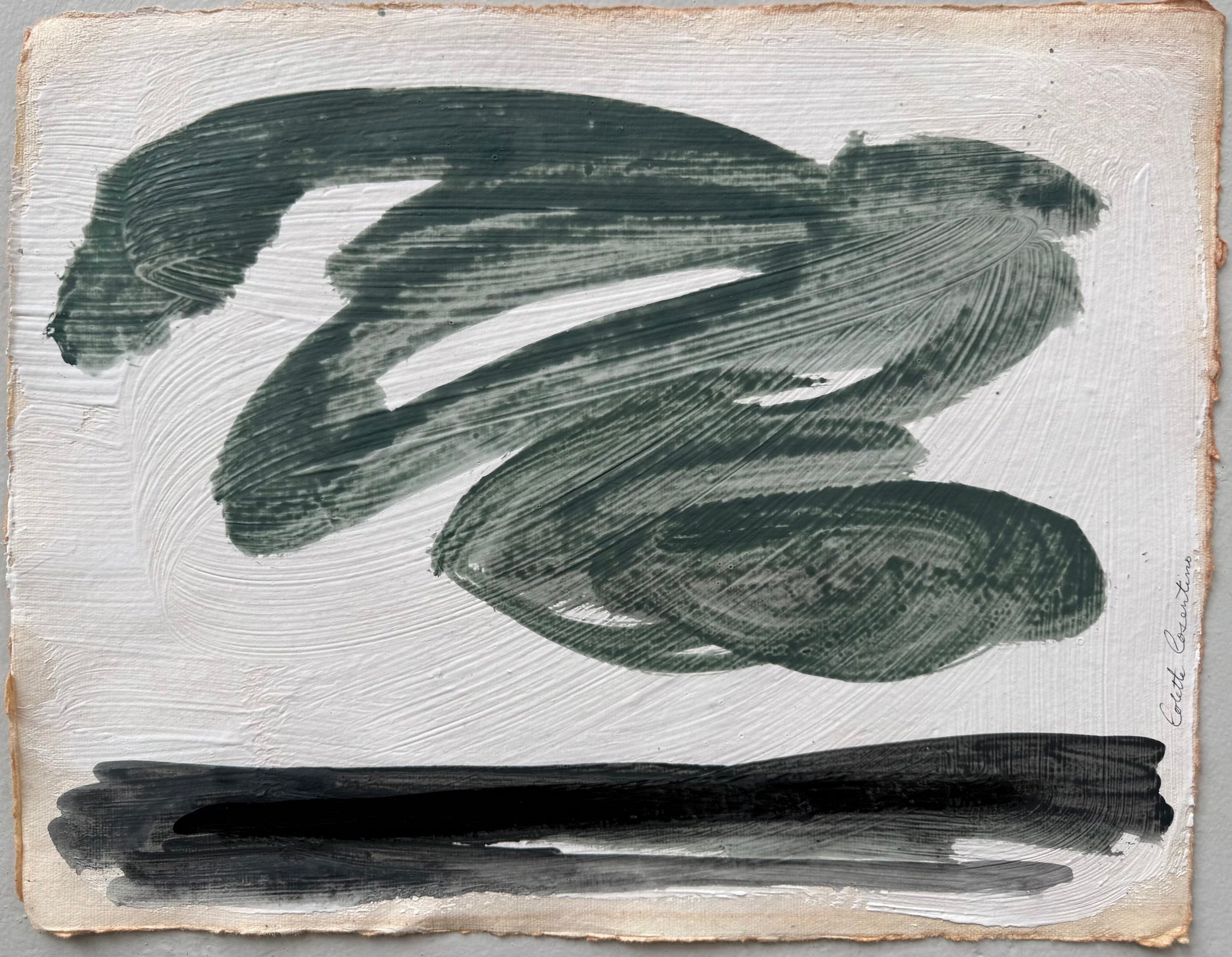 "Flying Thoughts" 11" x 14" abstract landscape painted in acrylic on handmade paper with a rough deckled edge. Shipping is complimentary within the USA.
