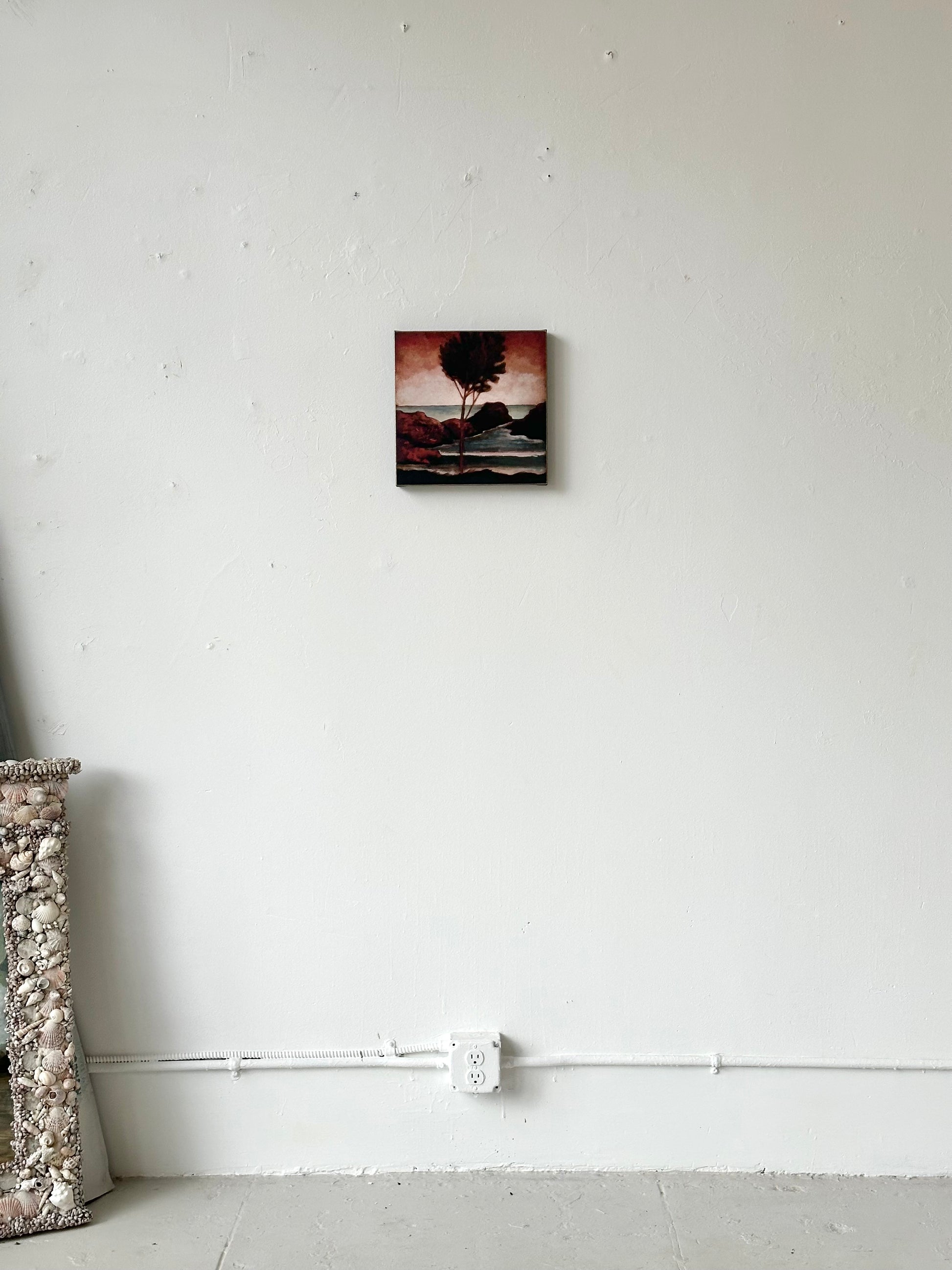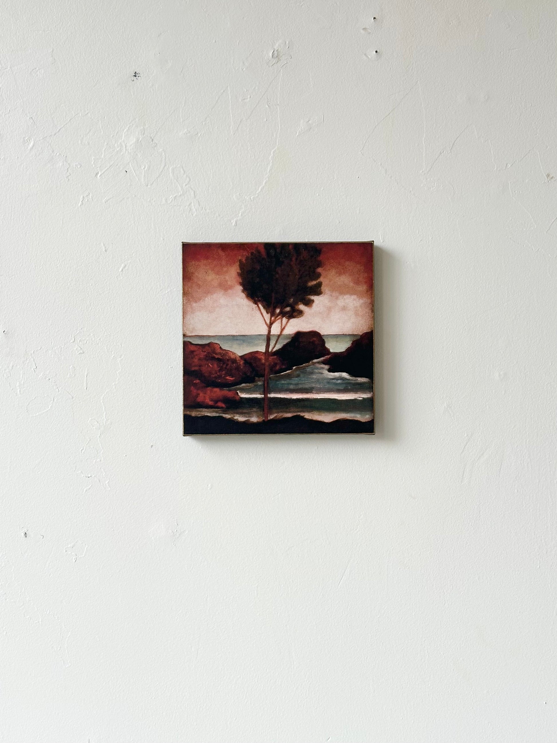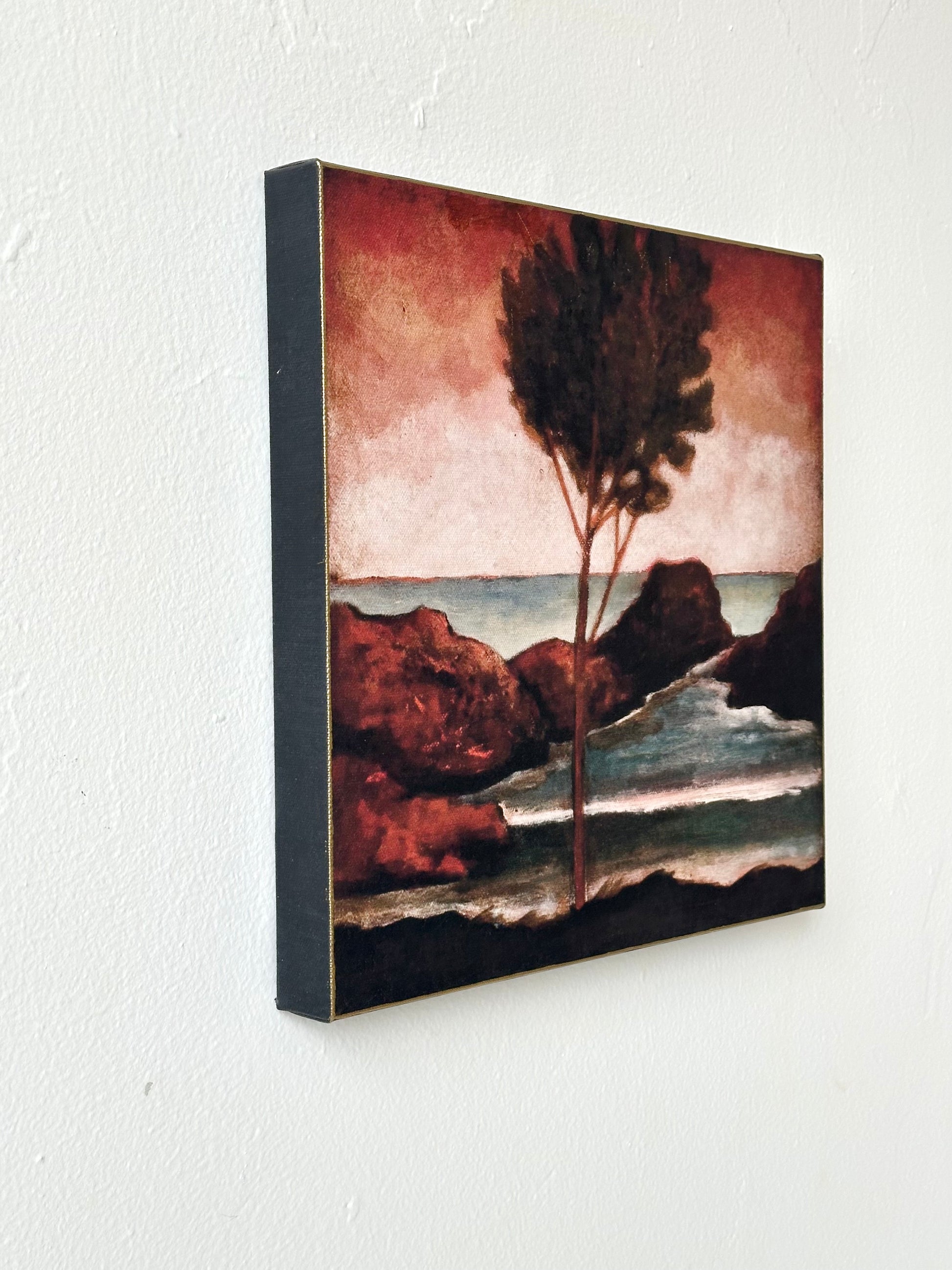 "Sonic Sunset" 12" x 12" fine art print on canvas depicting an ancient tree at sunset by the sea