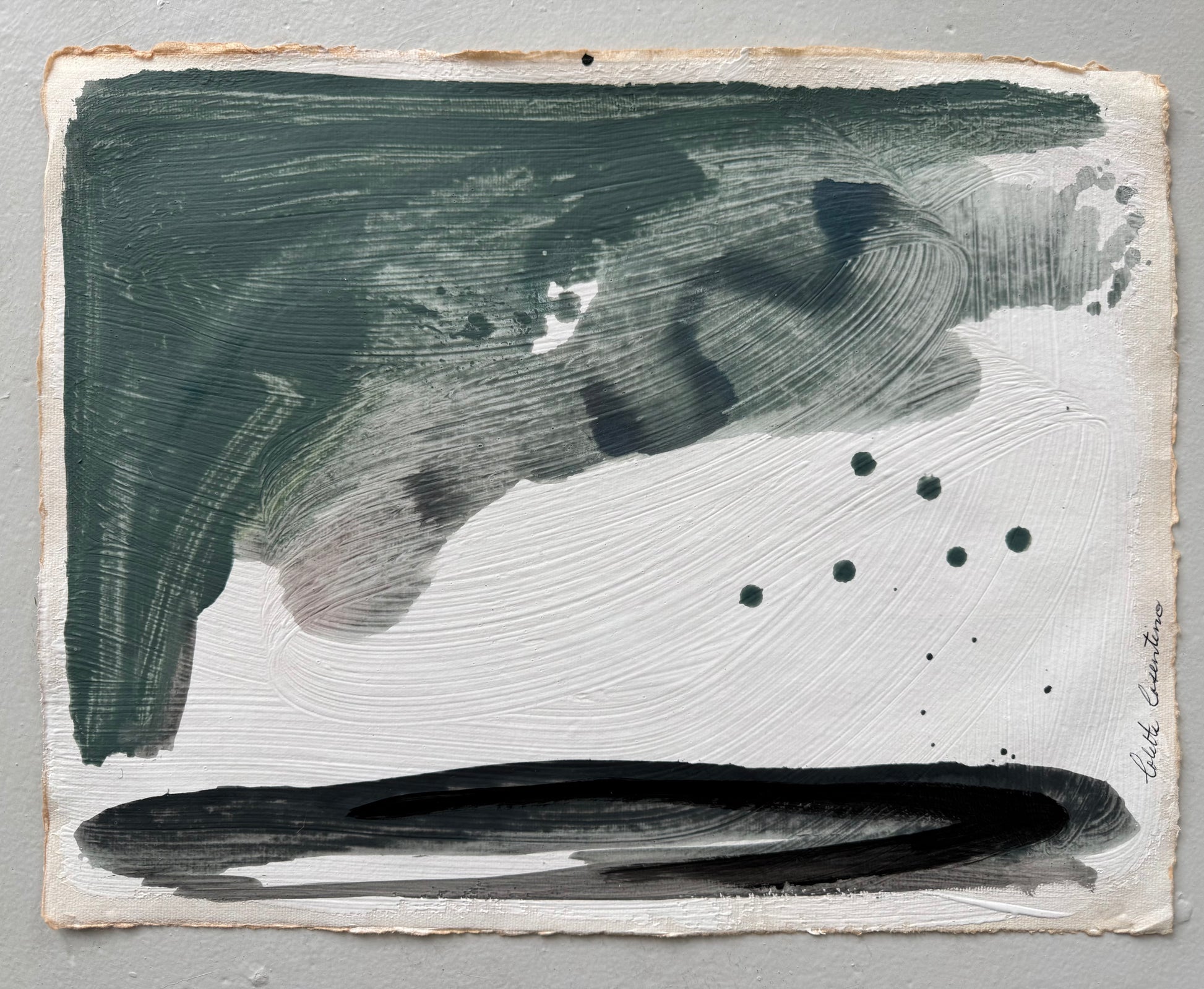 "Stepping Out In Faith" 11" x 14" An abstract landscape painted in acrylic on handmade paper with a rough deckled edge. Shipping is complimentary within the USA.