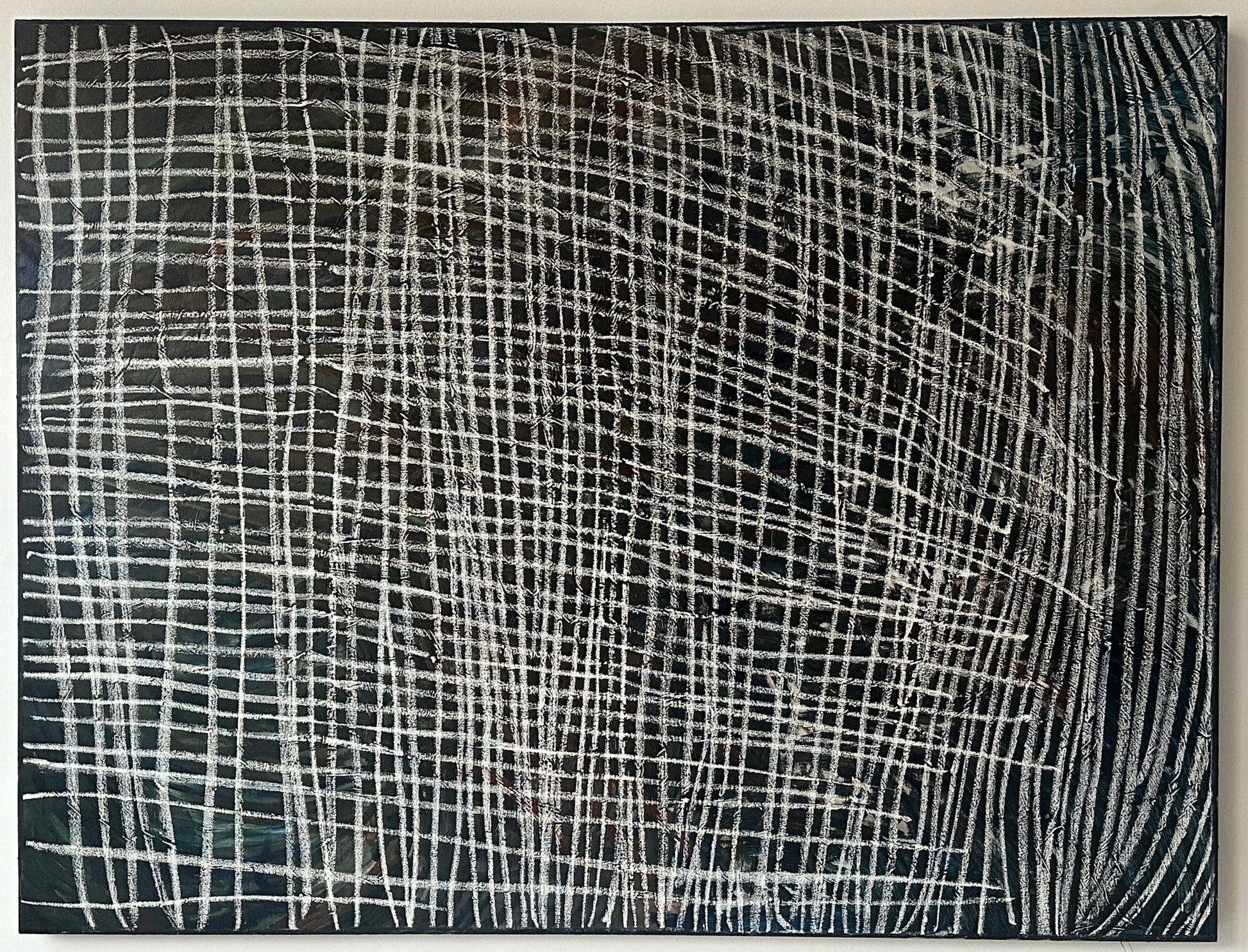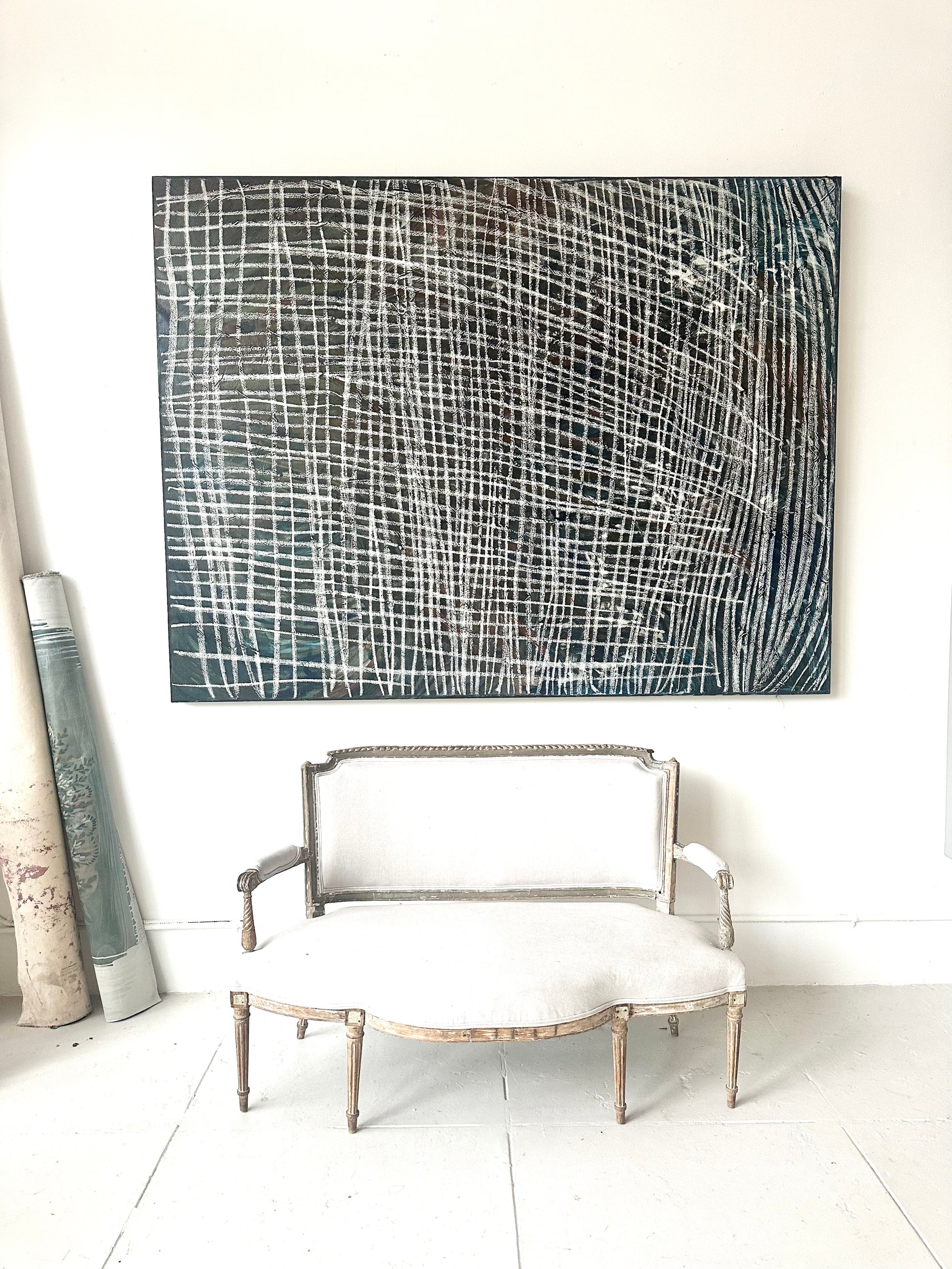 "Ties That Bind" is 64" x 84" painted in oil on canvas. Thickly textured and deliciously energetic. My intention while painting this was to depict a woven place of the heart, where family, friends and loved ones reside. Imperfect, sometimes wavering, but woven through and through nonetheless.