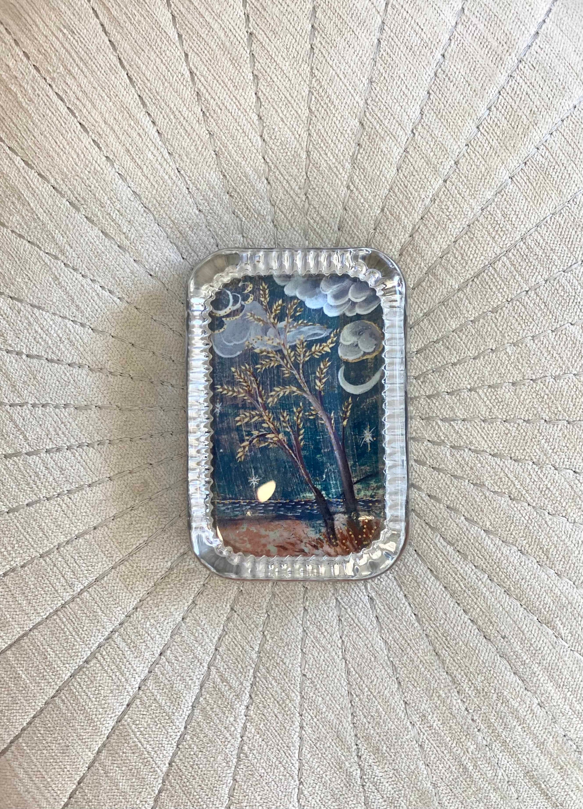Our First Edition hand embellished handblown glass paperweights are taylor made in our Santa Barbara studio using a curated images from Colette's ethereal paintings. Each artful piece is hand signed, numbered and dated by the artist in this First Edition of 50.